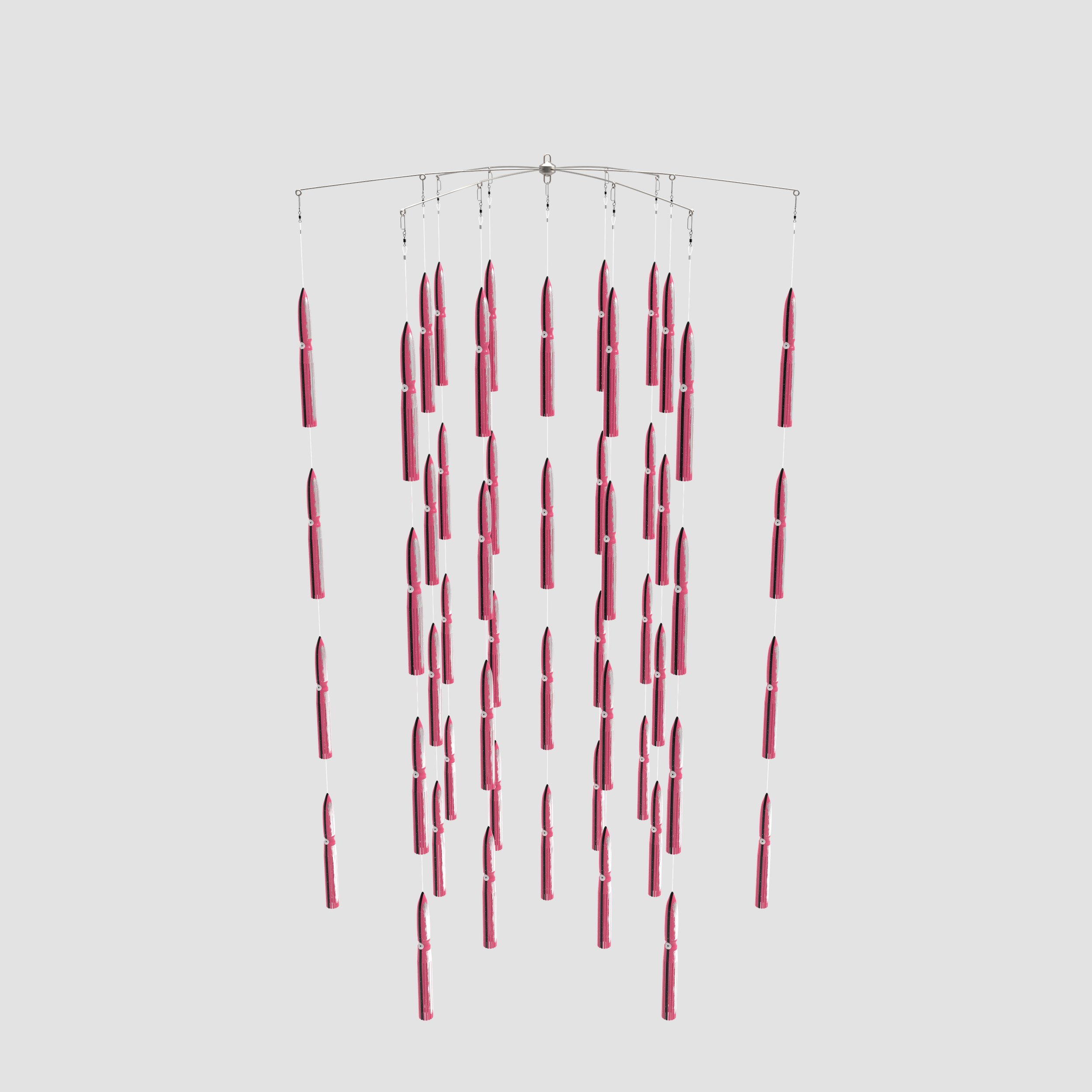 Our WolfPack Tackle Tuna chains have 52 custom 11″ squids with floats inside, all connected to a sturdy 38″ dredge bar.