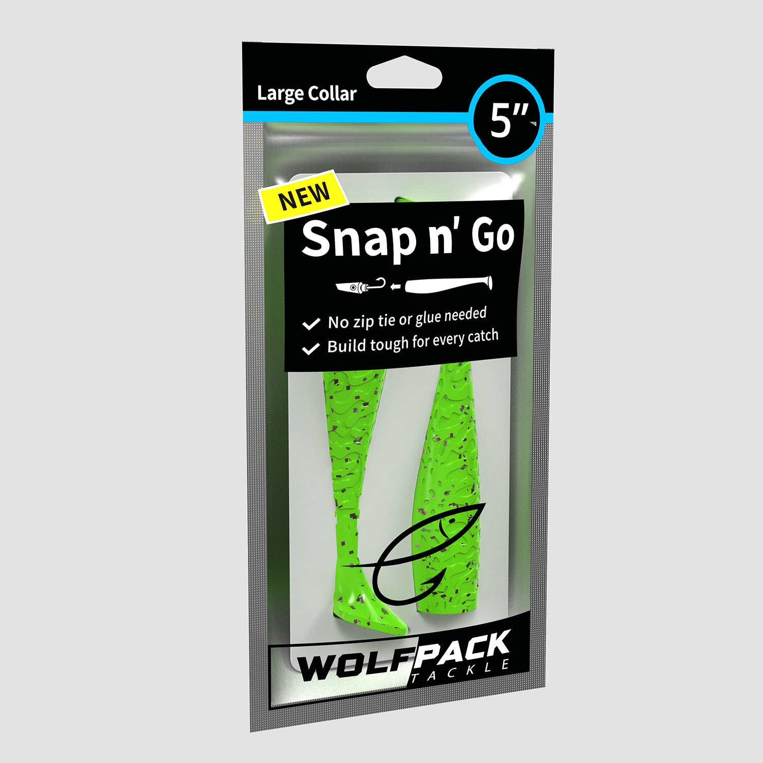 The Wolfpack Tackle jig head and paddle tails are among the most unique and versatile options on the market. Available in six different jig head weights, four tail sizes, and seven color options, we offer a solution for every angler’s needs. Each paddle tail features a pre-molded hook slot and our patent-pending Snap N Go locking system, allowing you to easily attach the tails to our jig heads without damaging the bait before you even start fishing.