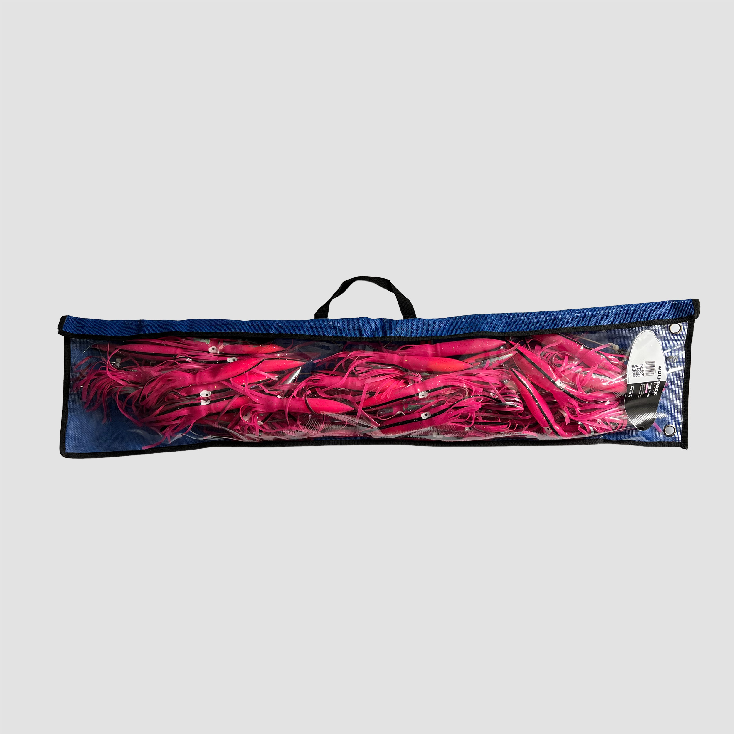 Our WolfPack Tackle Tuna chains have 52 custom 11″ squids with floats inside, all connected to a sturdy 38″ dredge bar.